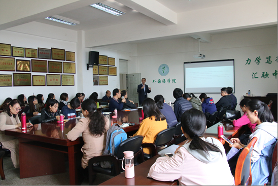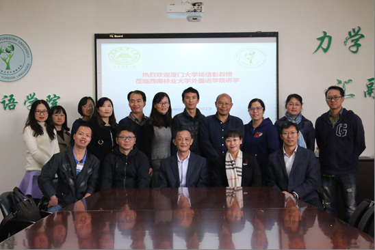 11月8日上午,厦门大学外文公司博士生导师杨信彰教授应邀到英国上市公司365做题为“学科语篇与学科知识“的专题讲座。英国上市公司365全体教师聆听了杨教授的讲座。会议由英国上市公司365副经理饶耀平主持。饶老师代表全院教师表达了对杨教授的热烈欢迎。