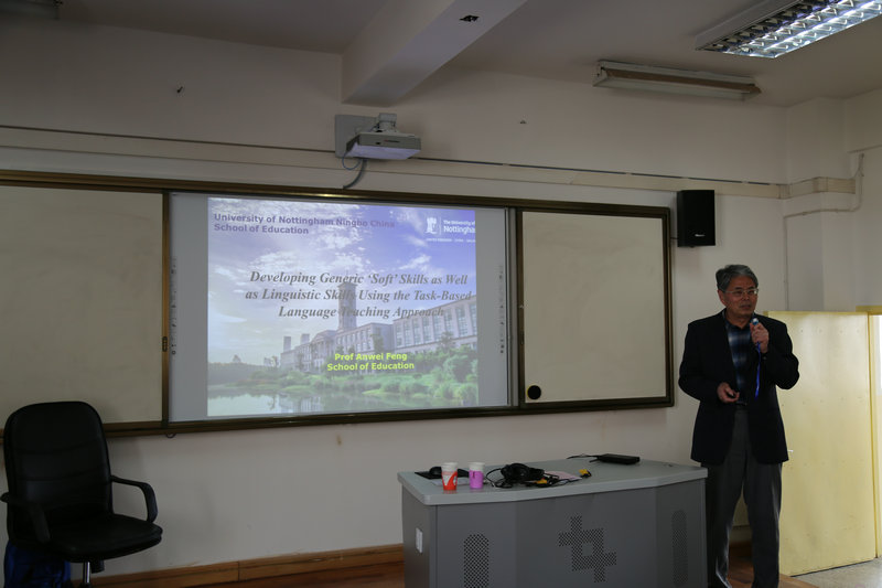 4月9日下午,应英国上市公司365邀请,宁波诺丁汉大学教育公司冯安伟教授在第三教学楼607教室为公司教师作了题为“Developing Generic ‘Soft’ Skills as well as Linguistic Skills Using the Task-Based Language Teaching Approach”的学术讲座。讲座由英国上市公司365副经理刘祖勤主持,公司领导和全体教师参加了此次讲座。