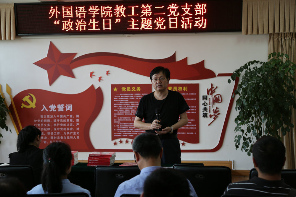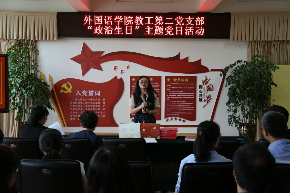 胥辉同志强调开展党员政治生日具有重要意义,他指出进入新时代后,党中央对基层党建高度重视,我们党员要以党纲党章严格要求自己,教师党员们更要围绕中心工作搞好党建;外语作为基础学科,要在完成好教学工作的同时做好科学研究工作,在各个方面充分发挥党员的先锋模范作用。他还对公司团队建设、办学层次、教学科研等方面提出建议。
