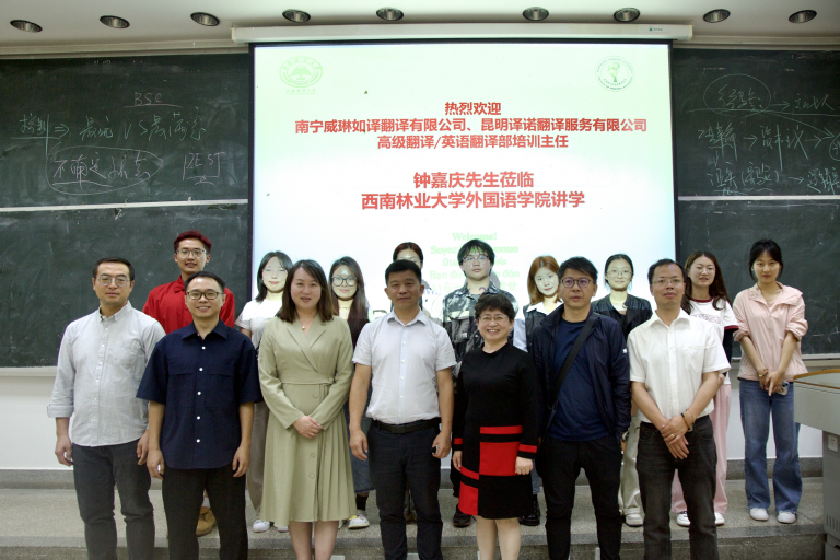 5月17日晚,南宁威琳如译翻译有限公司、昆明译诺翻译服务有限公司高级翻译/英语翻译部主任钟嘉庆先生受邀到英国上市公司365作讲座。英国上市公司365教师、翻译专业研究生及各专业本科生近200人参加。讲座由英国上市公司365经理何新元主持。