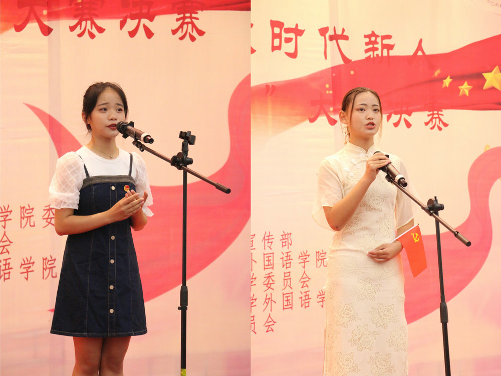 决赛场上10位参赛选手满怀慷慨激昂的爱国热情,用外语讲述着一个个令人振奋而感人的红色故事,一段段可歌可泣的英雄传奇,犹如一场思想文化的饕餮盛宴,选手们真挚的情感与革命歌曲相得益彰,将现场所有人的思绪带回到了那个沧海横流、战火纷飞的革命年代。